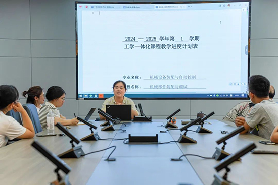 會議伊始,周老師根據(jù)人社部發(fā)布的文件要求,強(qiáng)調(diào)了工學(xué)一體化培訓(xùn)的重要性,同時將本學(xué)年分批推進(jìn)教師外出參加工學(xué)一體化培訓(xùn)計劃做了解釋,希望教師安排好教學(xué)任務(wù),按期參加培訓(xùn)。