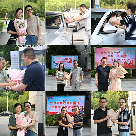 教師節當天,學院領導們早早來到校門口,為全體教職工送上第40個教師節的節日祝福。