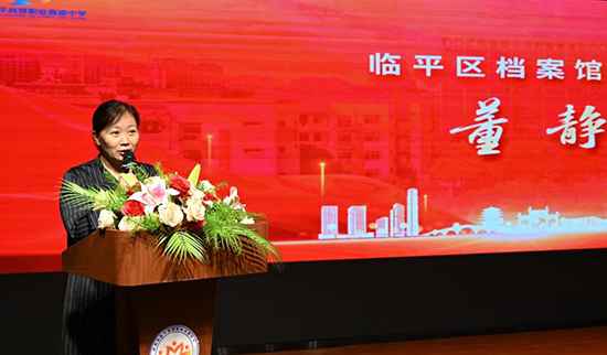 儀式上,臨平區(qū)教育局黨委委員張禹和臨平區(qū)檔案館館長(zhǎng)董靜分別發(fā)表了講話。