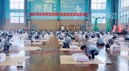 為豐富學(xué)生校園文化生活,提升學(xué)生執(zhí)行力、內(nèi)務(wù)整理水平,引領(lǐng)學(xué)生樹立正確勞動(dòng)觀,9月21日下午,紹興護(hù)士學(xué)校在體藝館舉辦2024級(jí)新生疊軍被比賽。