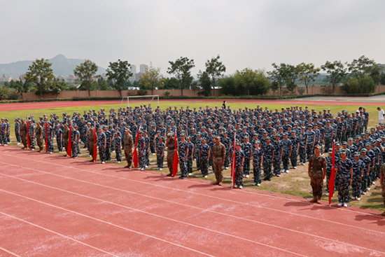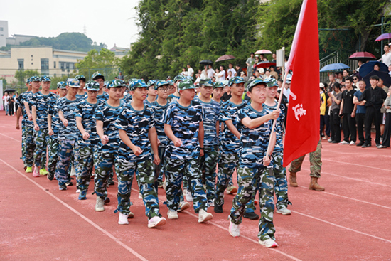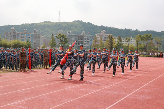 在激昂的軍樂伴奏下,陳爾彪對各連隊進行檢閱。學生“為校爭光”的口號響徹云霄,這是對軍魂的深刻詮釋與傳承。