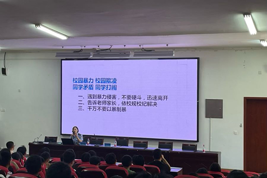 在談到校園暴力時,謝聰聰警官強調,面對校園暴力,首先要保持冷靜,及時向老師和家長報告情況,必要時可以報警處理。她還教授了學生們一些基本的自我保護技巧,以應對突發情況。謝聰聰警官則通過視頻資料,讓學生們了解校園暴力的嚴重后果,呼吁大家共同抵制校園暴力,營造和諧校園環境。