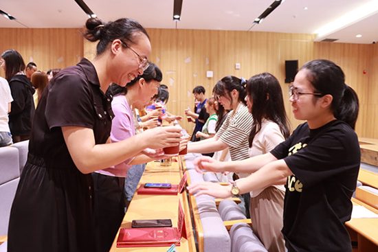 在徒弟向師傅敬茶的環節中,41位新教師手捧清茶,面向師傅,并深深鞠躬。這一傳統而富有意義的儀式,不僅是對師傅辛勤付出的表達,也是師徒間情感與責任傳遞的象征,預示著一段新的師徒情誼就此開啟。