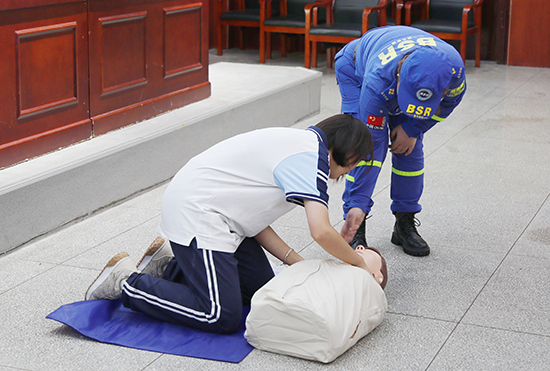 實際操作環節,師生積極參與,踴躍上臺親身體驗,并在專家的耐心指導下,逐漸掌握了心肺復蘇、止血包扎等急救技能的正確操作方法。