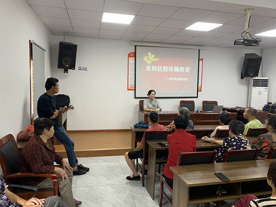 10月5日,安吉縣遞鋪成校在桃城社區開展以“學防詐知識,捂好錢袋子”為主題的防詐培訓,來自農科區的55位老年人參加此次活動。