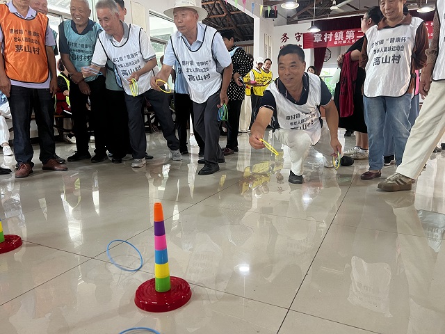 全鎮共有87位老人參加運動會。比賽現場,夾彈珠、套圈、珠行萬里、乒乓球、保齡球和籃球等多個趣味項目輪番上演,吸引眾多老年人的熱情參與。夾彈珠項目中,老年人手持筷子,聚精會神地夾取水中的彈珠,每夾起一顆都伴隨著一陣歡呼。套圈區,老年人瞄準目標,輕輕一投,套中獎品的喜悅溢于言表。珠行萬里則考驗著老年人的團隊協作和反應能力,他們齊心協力,讓彈珠在軌道上順利傳接。