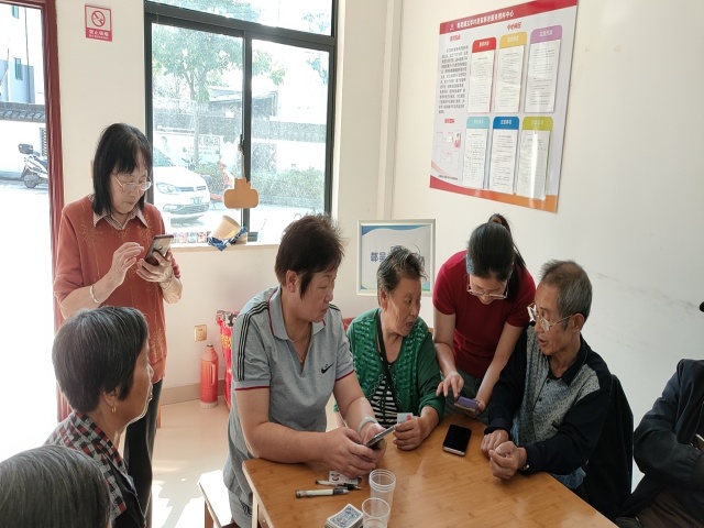 鄣吳鎮(zhèn)老年學(xué)校楊林嬌老師通過(guò)現(xiàn)場(chǎng)操作的形式,向老人們講解智能手機(jī)的一些基本操作步驟和微信使用方法,重點(diǎn)講了就醫(yī)掛號(hào)付費(fèi)、購(gòu)物等方面面臨的“數(shù)字鴻溝”。活動(dòng)現(xiàn)場(chǎng),老人們興趣高漲,邊操作邊詢問(wèn),楊老師和志愿者耐心講解,手把手指導(dǎo),直到基本會(huì)操作為止。