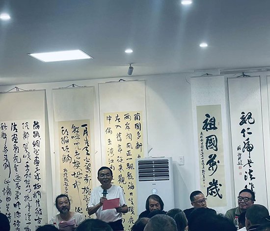 展覽會在熱烈、輕松的氛圍中拉開帷幕。浙江省書法家協(xié)會會員、浙江省書法研究會理事、諸暨市文聯(lián)委員會委員、諸暨市書法家協(xié)會副秘書長錢鴻波作主持。楓橋鎮(zhèn)人民政府黨委書記何曙升到會祝賀并致辭,從“一部楓橋史,半部諸暨史”的文脈說起,高度贊揚了魏仁虎的書法才藝,深情希望魏仁虎繼續(xù)為楓橋文化傳承和發(fā)展作出努力,彰顯文化底蘊。