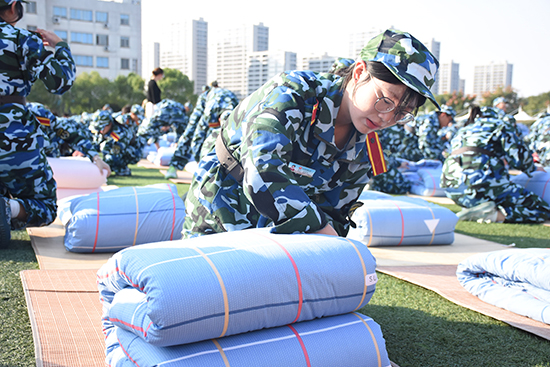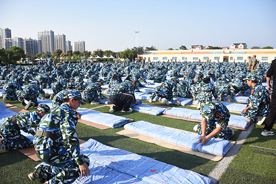 操場上,千人疊軍被活動火熱舉行。同學(xué)們將被褥折疊得猶如豆腐塊般規(guī)整,每一處細節(jié)都透露出對紀律的敬畏與尊重。這種嚴謹自律的軍人作風(fēng),已悄然融入他們?nèi)粘5拿恳粋€細節(jié)之中。