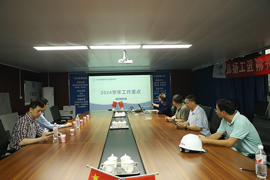 實地考察后,一行人回到會議室展開探討。王志勇書記就新校區的建設愿景作了詳細介紹,同時對標新校區的辦學新定位、辦學新目標、辦學新模式,重點介紹了學校2024年七大方面的綜合改革和高質量發展的系統工程。王飛副局長對學校未來的發展思路表示充分肯定,并結合辦學能力高水平、產教融合高質量兩個維度,要求鄞州職高班子團隊站位更高一些、視野更寬一些,要求新校建設產教融合更緊密、專業結構更優化,為學校的發展提供新思路。