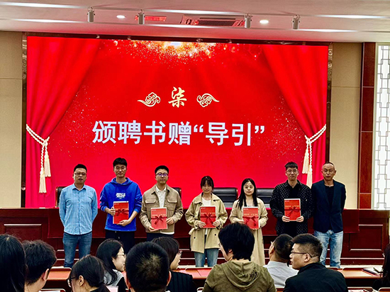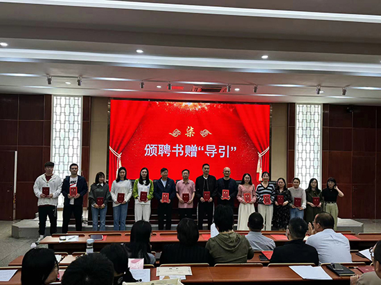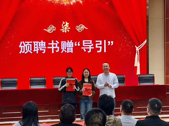 副校長劉葉海、教學管理處主任丁國文分別為德育導師和教學導師頒發聘書,各院系主任分別為新教師贈送成長禮物。