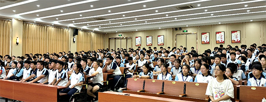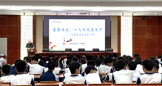 22、23級學生大會,是從“建校十禮”朗誦開始的。宋紹榮全面分析了進校以來學生的情況,重申了各項紀律要求,勉勵學生要勇擔責任,爭做榜樣。祝春鋼全面分析了開學學情調查問卷的結果,勉勵學生“星光不問趕路人,時間不負有心人!唯有腳踏實地,才能奮步向前。”對照本屆高三第一次聯合體考試和21級同期成績,指出了本屆高三學生發展后勁不足等問題,運用心理學中的“羊群效應”與“皮格馬利翁效應”來剖析,勉勵學生要心存夢想,敢于突破。