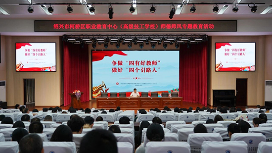 10月18日,紹興市柯橋區職業教育中心(高級技工學校)在報告廳舉行了師德師風專題教育活動。校黨委書記周國林主講,主題為《爭做“四有好教師”,做好“四個引路人”》,旨在加強師德師風建設,提升教師隊伍素質。