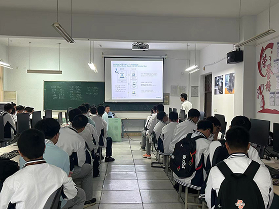 首先,湖州師范學院工學院副書記陳瑩致歡迎辭,介紹工學院基本情況和現在湖師院就讀學長們的學習和技能競賽情況,期待同學們順利升入湖師院并能完成3+4+3(3年中職+4年本科+3年研究生)的學業模式。