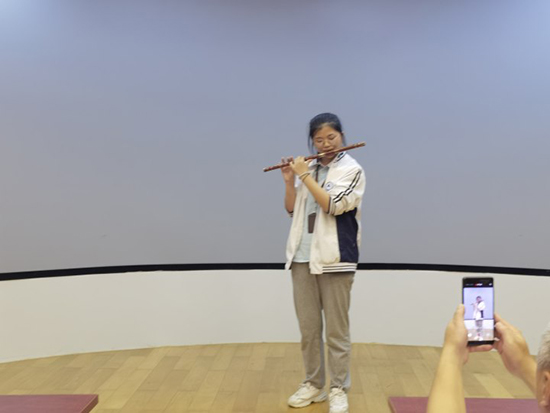 古箏《戰臺風》那激昂的旋律瞬間在空氣中迸發出來,時而快撥如驟雨,時而慢揉似微風,每一個音符都充滿了力量;笛子演奏《春到香江》時而婉轉低回,時而高亢明亮,讓大家感受到了春天的溫暖與希望。他們在舞臺上盡情釋放自己的才華,用獨特的方式表達著對生活的熱愛和對未來的憧憬。