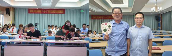 最為引人注目的環節莫過于非遺盤紙第一課的開啟。在“一老一小”的歡聲笑語中,一堂生動有趣的非遺盤紙教學課拉開了序幕。孩子們與老人們圍坐一堂,在老師的指導下,用靈巧的雙手將一張張普通的紙張制作成了一把荷韻扇,這一過程中,不僅增進了兩代人之間的情感交流,也讓傳統文化的種子在孩子們心中生根發芽。