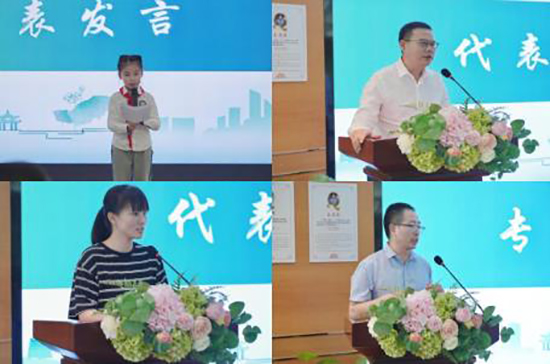 項目介紹結束后,現場氣氛就到了高潮。趙師紅博士和街道團工委書記吳慧一起為項目啟動揭幕,同時領導們還為在項目中發揮重要作用的三位“大先生”們頒發了聘書,以表彰他們為文化傳承所做出的貢獻。學生代表、校長及社區領導相繼發言,表達了對項目的美好祝愿與期待,趙師紅博士對項目進行專業的引領。