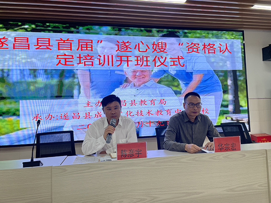 遂昌縣教育局副局長陳彥宇出席開班儀式并發言,他指出,要牢牢樹立“遂心嫂”品牌意識,資格認定是為了培育高素質的勞動者隊伍,“一招鮮,走遍天”;希望通過品牌的創建推動就業,形成供給側和需求側的“雙向”奔赴,讓大家都擁有人生“出彩”的機會、成功的可能;希望全體學員提高“站位”,將自己銘刻到品牌創建的歷史中去,攜手擦亮品牌,打造遂昌家政服務的金字招牌,同時抒寫自己人生的絢麗華章!