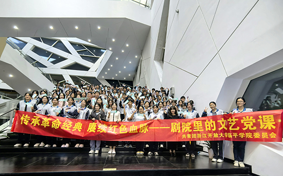 為進(jìn)一步傳承紅色基因,弘揚(yáng)革命精神,豐富校園文化生活,10月16日晚,浙江開放大學(xué)臨平學(xué)院(臨平商貿(mào)職高)組織了120余位學(xué)生代表走進(jìn)臨平大劇院,開展“傳承革命經(jīng)典 賡續(xù)紅色血脈——劇院里的文藝黨課”活動,共同觀看了話劇《向延安》。