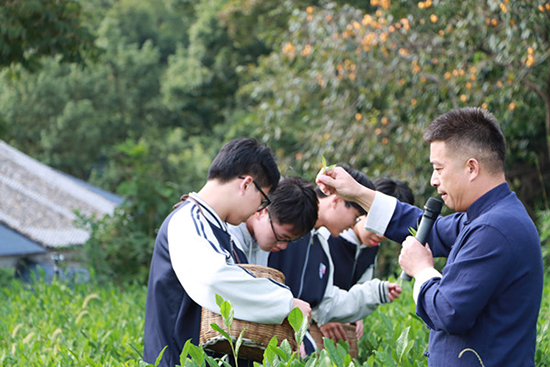 為了讓學生們更加直觀地了解茶葉的采摘和制作過程,同學們還在林招水老師的指導下,體驗了炒茶和采摘,在茶香四溢中體會茶背后所蘊藏的茶文化。