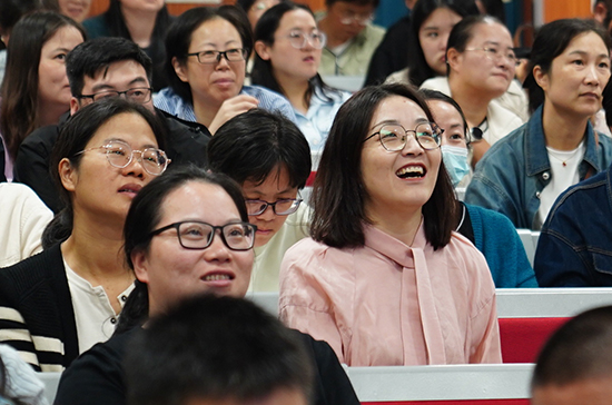 作為其中一項系列活動,學(xué)校組織全體教職工在階梯教室匯集一堂,觀看電影《我愛我的老師》。該電影為首部由浙江省教育系統(tǒng)自行組織拍攝的教師題材影片,四部短片,分別取材于浙江四位優(yōu)秀教師的事跡,藝術(shù)再現(xiàn)了浙江省廣大教師“為黨育人、為國育才”的初心使命何赤誠情懷。