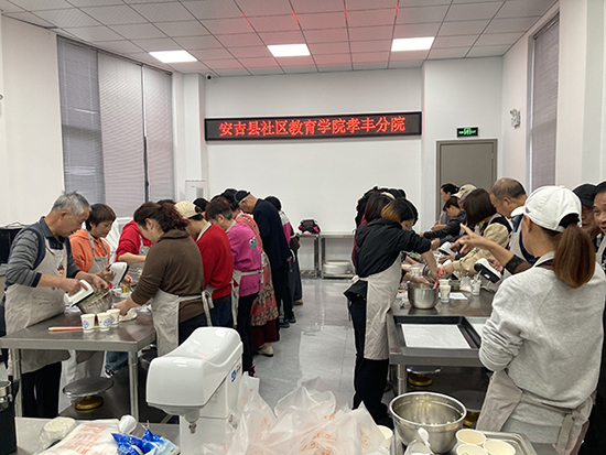 10月28日下午,安吉社區(qū)教育學(xué)院孝豐分院開展了“曲奇餅干”烘焙培訓(xùn)活動,現(xiàn)場教授居民制作曲奇餅干。三眼井社區(qū)30位居民在學(xué)校烘培室參加了培訓(xùn)活動。