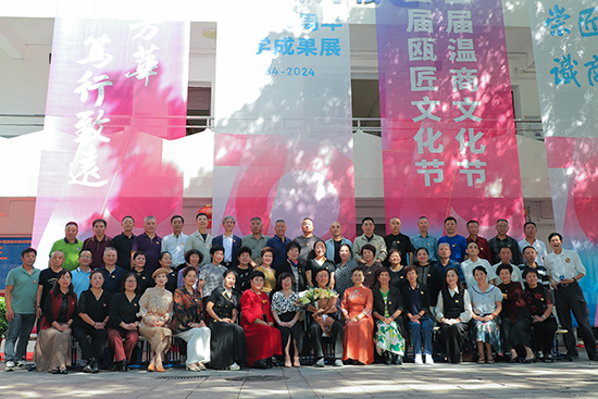 學校還在溫州市工人文化宮舉行了“七秩芳華·篤行致遠”建校70周年辦學成果展演。以學校形象片《問道》為開場序幕,通過學校發展的過去、現在、未來三個篇章總結了學校70年辦學成果。現場,1959屆校友薛鐵章、1963屆校友馮大明等把精心創作的書畫作品捐贈給母校,以此表達對母校的深厚感情。其中,1958屆校友、中國書法蘭亭獎獲得者、西泠印社理事林劍丹捐贈了四幅書法作品外,還為學校新校區題寫了校名,并將學校的辦學理念和育人目標——“惟和惟創”“明大禮、崇匠藝、識商道”融入書法作品,寓意深遠。此外,該校1993屆校友王航宇為學校建校70周年創作了歌曲《獻禮七秩芳華》,用旋律和歌詞傳遞了對母校的深深祝福;1987屆校友林臻宇指導的舞蹈《蓮鼓越歌行》,舞動出中華傳統文化的深邃與典雅;1961屆校友、世界教科文組織專家成員、國家一級導演章世杰的弟子——國家一級演員薛清帶來了戲曲《天女散花》,傳遞著中國戲曲藝術的瑰麗想象。
