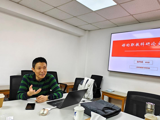 下午,上海教科院的翁偉斌教授為研學團隊帶來了關于《好的職教科研論文好在哪》的主題講座。他從選題、文獻綜述、科研思路、論據分析等多個方面進行了深入剖析,并解答了教師們在科研過程中遇到的困惑和問題。他的講解既有理論高度又有實踐深度,讓教師們受益匪淺。