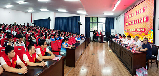 參觀禁毒基地后,領導們移步到一樓階梯教室參加主題為“百校禁毒 同心護苗”的青少年毒品預防教育講座。