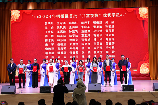 胡李川宣讀《關(guān)于表彰2024年柯橋區(qū)“學(xué)習(xí)之星”“書香家庭”“學(xué)習(xí)型社團”“學(xué)習(xí)型社區(qū)”“學(xué)習(xí)型企業(yè)”的決定》和《關(guān)于表彰2024年柯橋區(qū)首批“共富夜校”優(yōu)秀學(xué)員的決定》,20名“學(xué)習(xí)之星”、20戶“書香家庭”、16個“學(xué)習(xí)型社團”、16個“學(xué)習(xí)型社區(qū)”、19家“學(xué)習(xí)型企業(yè)”和59名“共富夜校”優(yōu)秀學(xué)員受到表彰。