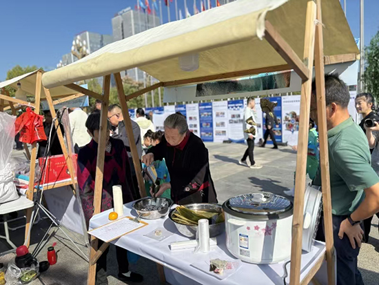 另一側,裹粽子區也同樣熱鬧非凡。安吉縣粽子制作技藝傳承人陳桂蓮熟練地演示著包粽子的過程,從挑選粽葉、填充糯米,到折疊捆綁,每一個步驟都透露著匠人的細心與專注。圍觀的市民中不乏初次嘗試者,他們跟隨老師的指引,小心翼翼地將清香的粽葉包裹成一個個小巧玲瓏的作品。空氣中彌漫著稻米與竹葉的淡雅香氣,讓人不禁聯想到端午佳節的溫馨場景,讓這份傳統的習俗在新一代心中生根發芽。