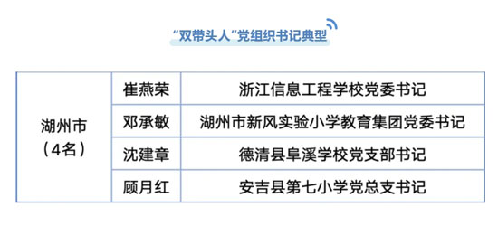 近日,中共浙江省委教育工作委員會辦公室印發《關于公布第二批省中小學校示范性黨組織和“雙帶頭人”黨組織書記典型選樹名單的通知》,選樹100名同志為第二批省中小學校“雙帶頭人”黨組織書記典型。浙江信息工程學校黨委書記崔燕榮榮獲“雙帶頭人”黨組織書記典型。
