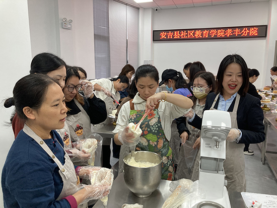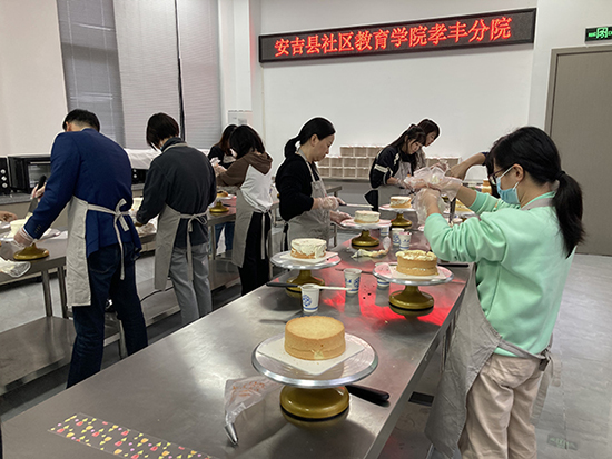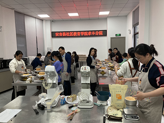 為了進一步加強轄區(qū)企業(yè)人事干部隊伍建設(shè),提高人事干部綜合素養(yǎng),也讓人事干部們緩解平時繁重的工作壓力。11月14日下午,安吉社區(qū)教育學(xué)院孝豐分院組織轄區(qū)企業(yè)人事干部在學(xué)校烘焙教室開展“快樂烘焙 輕松解壓”為主題的蛋糕制作體驗活動,共有25位人事干部參加。