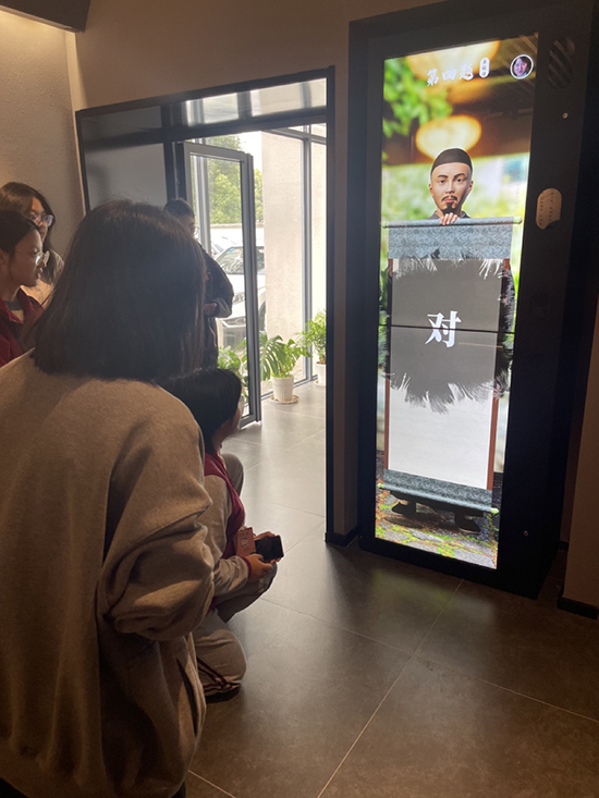 通過全息影像、人臉追蹤、人體手勢識別等數字展陳形式,同學們仿佛穿越時空,與宋代詞人面對面交流,在“挑戰詞人”游戲中,新綠文學社的成員們更是展現出深厚的文學功底和團隊協作能力。這些互動項目不僅加深了同學們對宋詞的理解,更激發了他們對文學創作的熱情。