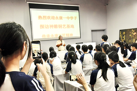 五是開展旅游參觀和中小學生的非遺體驗活動。程育全在銅藝博物館內設立程育全銅藝工匠創作室、程育全技能大師工作室、程育全大師銅藝工作室研學中心、永康銅藝手工作坊,還配備了立體多媒體播放展示和全館 VR 場景,讓參觀者參與永康“打銅”的整個過程。并舉辦夏令營,讓青少年了解、感受永康銅藝和工匠精神,永康銅藝館每年免費接待上萬名學生和參觀旅游人員。