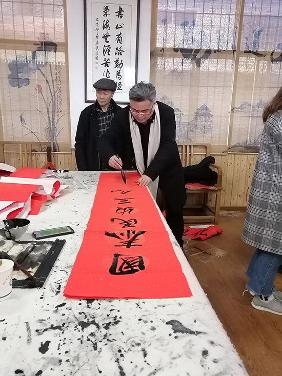 3.每逢春節,吳建其又帶著書法家們走進鄉村,為村民寫對聯接福迎春。并先后在馬金錢江源藝術中心、霞山鄉村美術館、下淤文化禮堂等地舉辦開化草書筆會。
