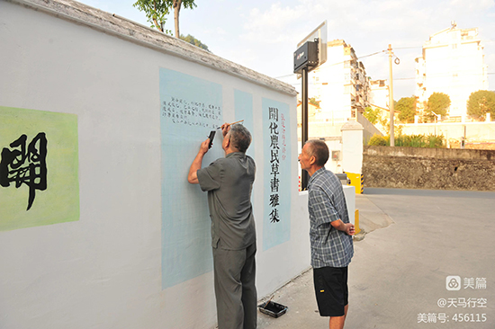 2.經過打造,先后在馬金鎮徐塘村、音坑鄉儒山建起了省級書法村,池淮書協會員從起步的數位發展到近70位,達到專業草書水準的會員就有20余人。4為打造開化草書品牌,吳建其與書協業務骨干分片區上門幫扶指導,并根據學員不同的性格推薦適合的草書字貼。吳建其攜業務骨干專程送宣紙、墨汁上門走訪指導。并通過筆會,比賽,專家點評等活動提升開化草書綜合水平。吳建其組織8位書法家在中村梅園搭起的百米長卷上書寫張道洽的梅花詩,走進山環水繞的瑤溪,送文藝進萬家,在百米文化墻上留下開化草書的靈動風姿,進校園免費開展書法講座。