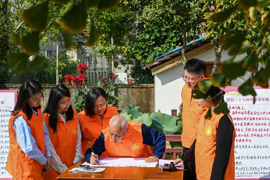 “扁擔學校”堅持雙腳走,走街串巷,走鄉間村道,走進大山。貼近農村實際,結合地方時事政策,助力政府政策推進,2018年潛川鎮小城鎮環境綜合整治,2019年潛川鎮“百日大攻堅爭創示范村”全域拆整行動、2020年的村級組織換屆選舉紀律,2021年的疫情防控政策,2022年的美麗城鎮建設,2023年的做好亞運東道主等內容也成為宣講隊的重要宣傳內容。宣講隊兼具收集民意、反映民聲的功能,逐漸成為黨委政府與群眾之間的“溝通橋梁”,有效打通基層宣傳“最后一公里”,讓老百姓在家門口就能深入學習理解黨的政策理論方針。