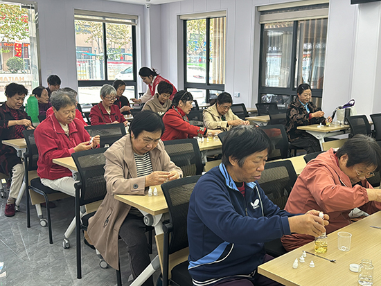 活動現(xiàn)場,老師簡單地向老年居民介紹了老年人手部皮膚特點及需求,講解了平時生活中如何正確護膚以及如何選擇護膚品等相關(guān)知識,并把制作護手霜的相關(guān)材料依次分發(fā)給老年居民。