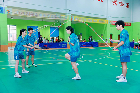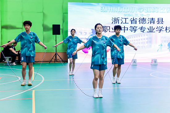 在湖州市中小學生跳繩比賽中,德清職業(yè)中專跳繩隊16名運動員在領(lǐng)隊、校黨委委員馬紀孝的帶領(lǐng)下,在教練員黃浙、張富老師的精心指導下,以精湛的技藝和團結(jié)的協(xié)作,在十多個單項和合作項目中摘金奪銀,其中30秒單搖、4*30秒交互繩接力、男子女子個人花樣、30秒一帶一單搖、車輪花樣基礎套路、3分鐘10長繩8字跳等10個比賽項目均取得第一名,力壓群雄,奪得高中組冠軍。運動員們在賽場上的每一次跳躍,都凝聚著平日里的辛勤汗水和不懈追求。他們的奪冠,不僅展現(xiàn)了個人的實力,更是團隊協(xié)作精神的最佳體現(xiàn)。