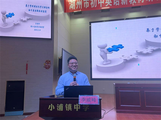 浙江省初中英語教研員李威峰帶來了題為《基于學(xué)科項目化理念的初中英語新教材使用》的講座。在講座中,李老師結(jié)合新教材的Unit 5單元,整體闡述了自己的項目化教學(xué)思路,同時圍繞教材研究、真實課堂、師生為本三點講述了如何用好新教材、如何上好一堂課。杭州市英語教研員曹群珍開展《單元整體視域下的七上教學(xué)建議》的講座。曹老師指出教師要理解學(xué)科邏輯、教材編寫邏輯、單元邏輯,鏈接生活邏輯,從而更好地理解教學(xué)邏輯和學(xué)習(xí)邏輯。紹興市英語教研員周智忠分享《基于理解看新教材的五個“有利于”》。他從有利于探究主題及主題意義、有利于實施單元整體教學(xué)、有利于推進知識向能力轉(zhuǎn)化、有利于實現(xiàn)教學(xué)評一致性、有利于開展跨學(xué)科實踐活動五個方面進行詳細闡述。三位專家從不同的角度解讀新教材,并結(jié)合案例給教師們分析了教學(xué)的方向,讓老師們進一步明確了新教材的理念、邏輯和實施策略。