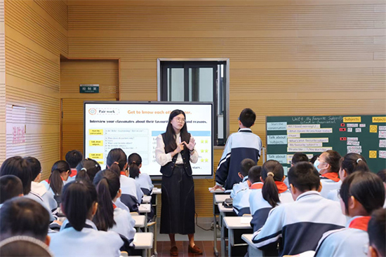 孫萬利老師執(zhí)教Unit5 Fun Clubs Section A(1a-1d),通過輕松的Free talk導(dǎo)入主題圖,在讀圖中喚起學(xué)生對clubs主題的初步感知。隨后,她對課本聽力任務(wù)的適當(dāng)改編,使得學(xué)生深入滲透對聽力材料的理解。學(xué)生在Role play和Group work環(huán)節(jié),結(jié)合真實的生活經(jīng)驗進行實踐探索,感知語音知識和啟發(fā)文本內(nèi)容。