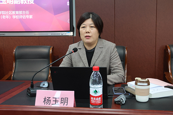 下午,上海市靜安社區(qū)學(xué)院社區(qū)教育部主任、上海市街鎮(zhèn)社區(qū)(老年)學(xué)校評(píng)估專家楊玉明副教授作題為《上海靜安區(qū)老年教育實(shí)踐分享》的專題講座。楊玉明副教授闡述了老年教育的基礎(chǔ)理論,通過(guò)案例分析、優(yōu)秀課例分享了上海市靜安區(qū)老年教育的隊(duì)伍建設(shè)、課程建設(shè)與教學(xué)實(shí)施狀況,予人啟迪。