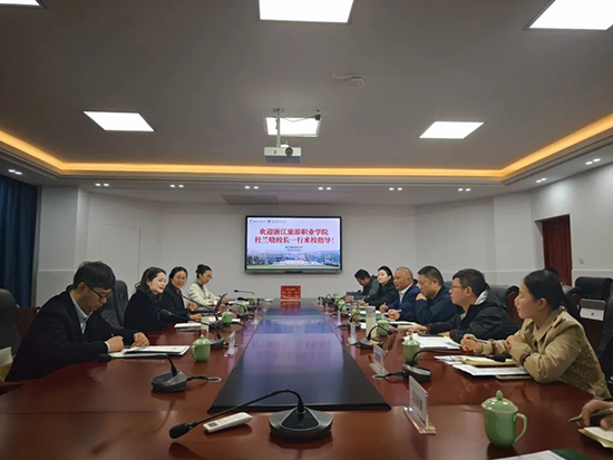 11月22日,浙江旅游職業學院黨委副書記、校長杜蘭曉及其團隊一行來衢州旅游學校調研指導。開化縣政府黨組成員、根宮佛國發展中心主任、文廣旅體局黨委書記吳根良,縣文廣旅體局黨委副書記、局長姜敏,副局長凌素培,衢州旅游學校黨總支書記徐善軍,校長陳蔚陪同調研。