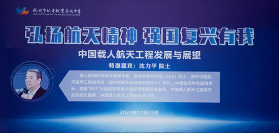 為深入學(xué)習(xí)航天精神,激發(fā)學(xué)生的愛國情懷,筑牢責(zé)任擔(dān)當(dāng),并啟迪學(xué)生的創(chuàng)新思維,凝聚團(tuán)結(jié)協(xié)作向心力,以航天逐夢征程砥礪奮進(jìn)之志,11月25日下午,杭州市臨平職業(yè)高級中學(xué)特邀載人航天科學(xué)技術(shù)領(lǐng)域?qū)<摇H宇航科學(xué)院(IAA)院士沈力平來校,為同學(xué)們開設(shè)了一場主題為“中國載人航天工程發(fā)展與展望”的精彩講座。本次講座采用線上+線下方式進(jìn)行,各班教室設(shè)分會場,學(xué)生在任課教師組織下認(rèn)真觀看直播。
