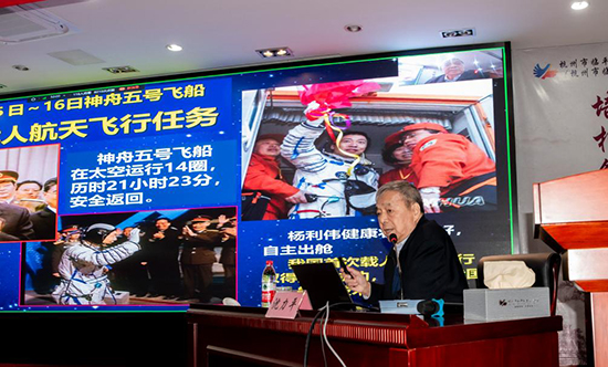 沈力平院士的講座從載人航天工程的立項及“三步走”發(fā)展戰(zhàn)略、中國載人航天工程技術(shù)體系、飛船與空間實驗室歷次飛行任務(wù)、空間站建設(shè)及在軌科學(xué)技術(shù)研究與應(yīng)用、載人月球探測工程以及對未來的展望六個方面展開。