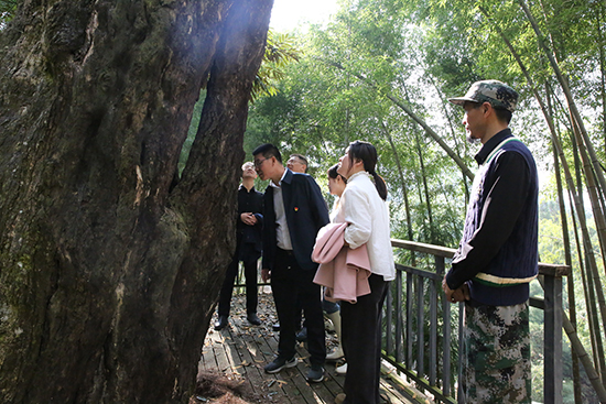 在當地向導的帶領下,黨員們首先參觀了著名的“藏槍樹”。這棵高約二十米、腰圍近兩米的大樹,因其曾藏匿十八支步槍、四支手槍及大量子彈而得名,見證了戰爭年代的艱苦與新時代的繁榮。