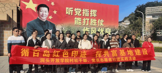 為深入貫徹國家開放大學思想政治理論課社會實踐教學指導思想,提升洞頭開放學院學生的思想政治理論水平,增強他們觀察社會、分析現象的敏銳度和能力,全面實現教育過程的全覆蓋與深入性,11月24日上午,浙江開放大學洞頭學院在海霞村隆重舉辦了主題為“追尋紅色足跡,傳承‘海霞精神’”的2024年秋季學期新生思想政治理論課教學實踐活動。