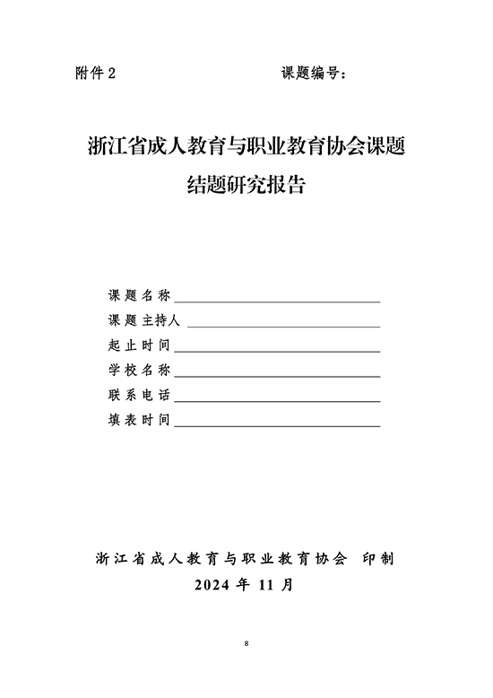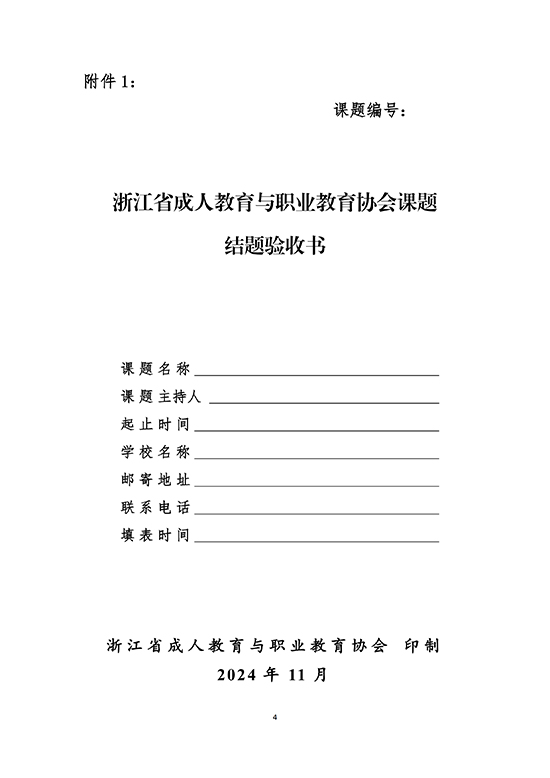 根據(jù)《浙江省成人教育與職業(yè)教育協(xié)會(huì)科研課題管理辦法》的相關(guān)規(guī)定,經(jīng)研究,決定開(kāi)展2024年下半年浙江省成人教育與職業(yè)教育協(xié)會(huì)立項(xiàng)課題結(jié)題驗(yàn)收,現(xiàn)將有關(guān)事項(xiàng)通知如下: