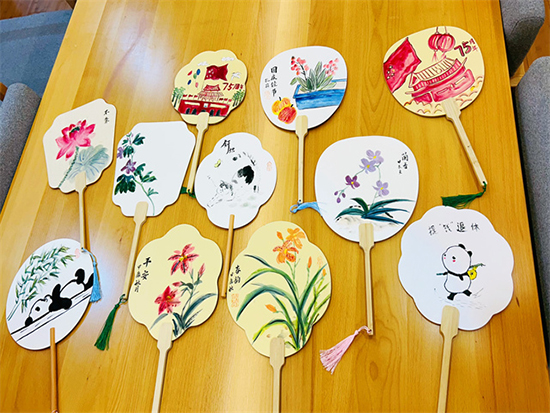 學員們用手中的畫筆,在扇子上創(chuàng)作著,經(jīng)過兩個小時的努力之后,每個人都完成了一把手繪團扇。